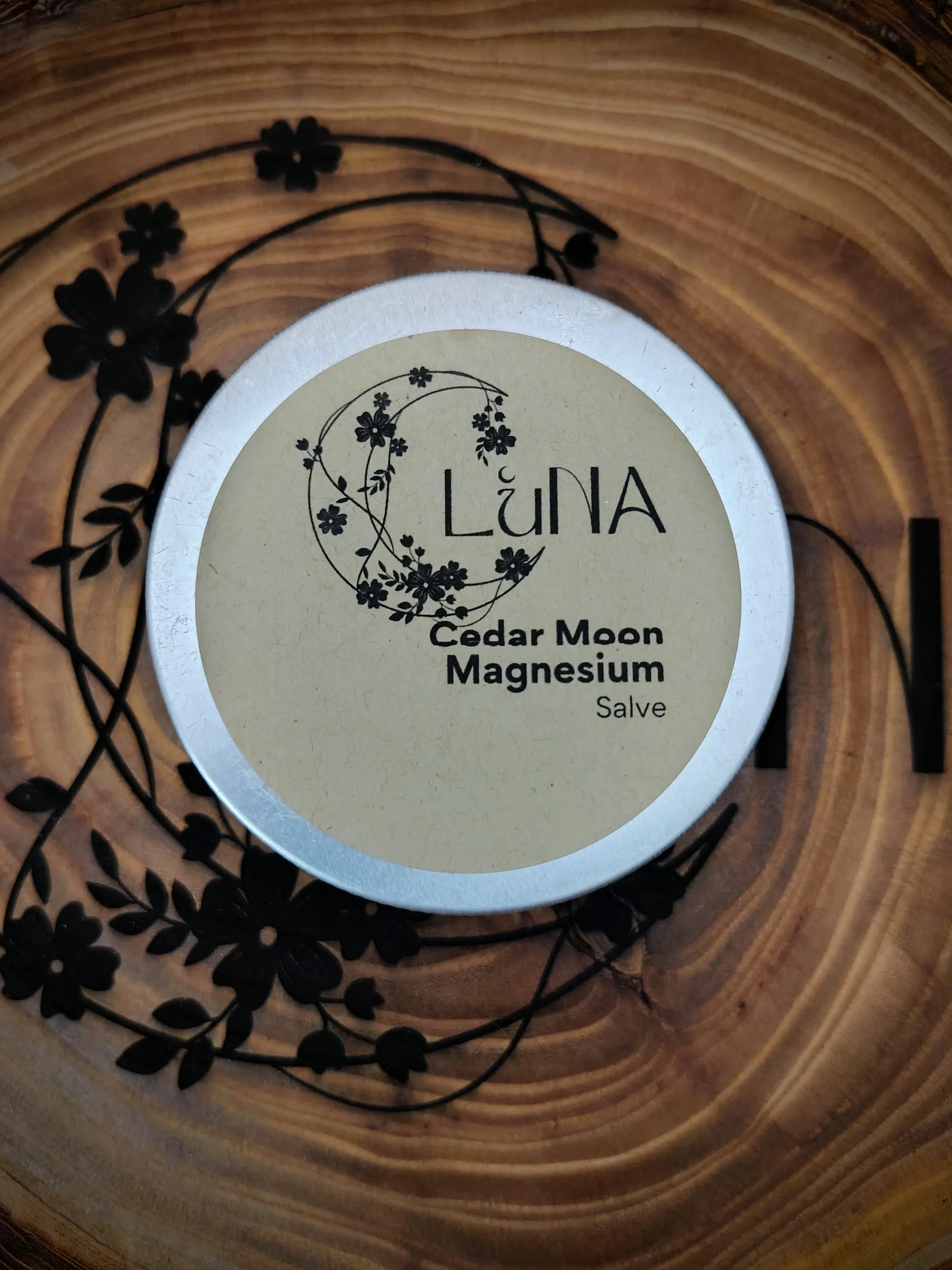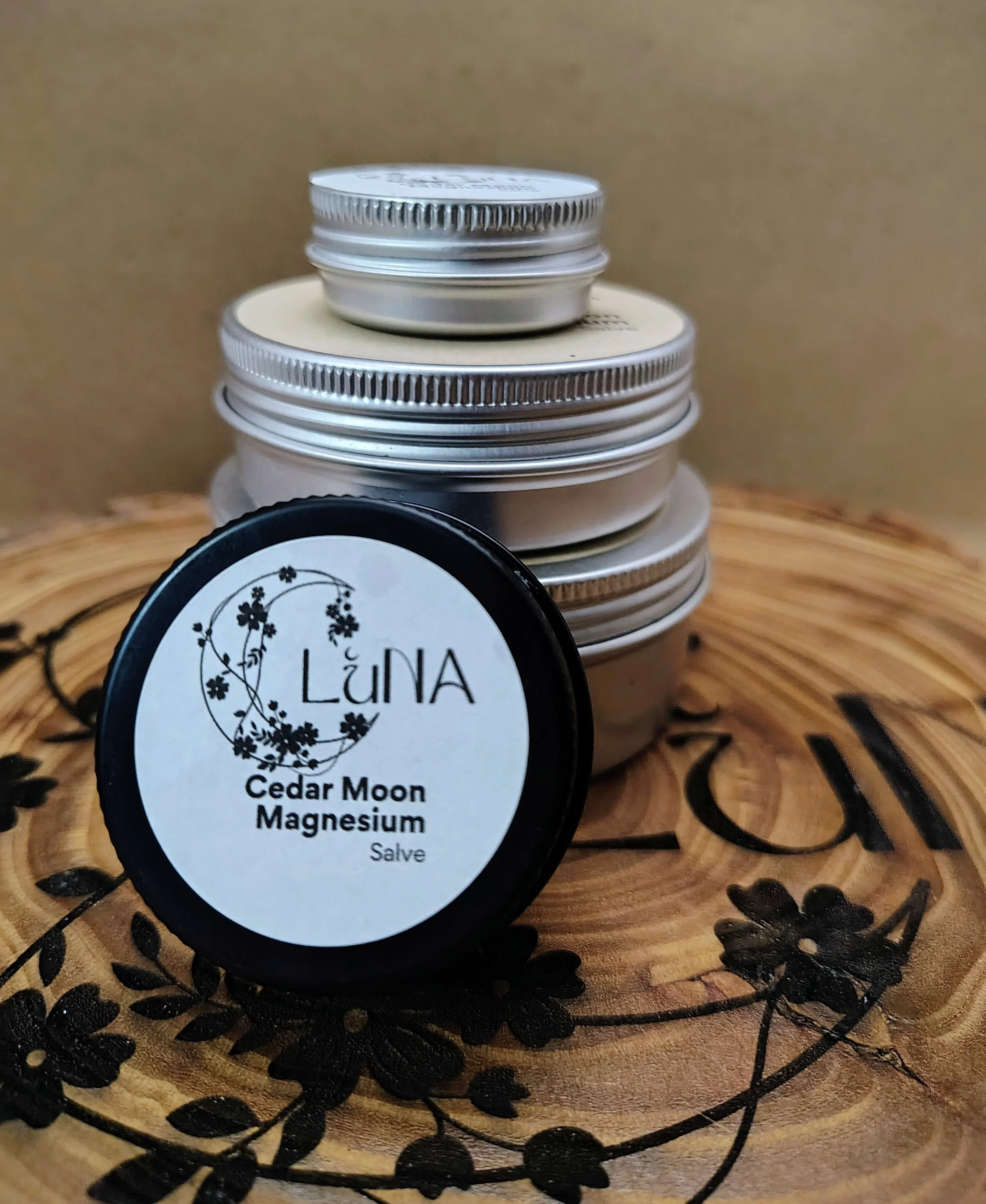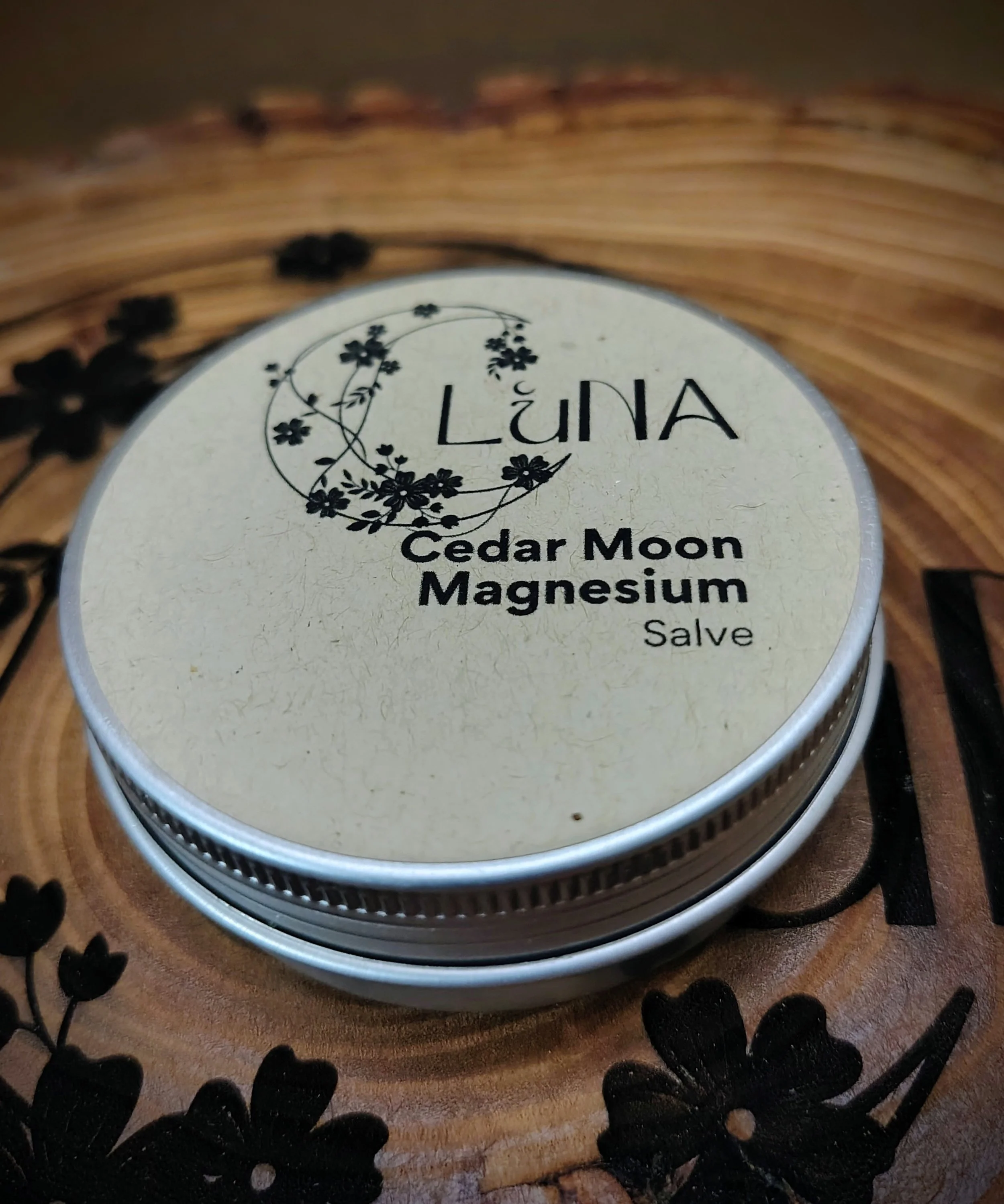 Luna Marvelous Magnesium first starts as the none other Luna Sober slave. Sober Salve is crafted with healing cottonwood buds, known for their natural pain-relieving and anti-inflammatory properties. This powerful salve also contains echinacea to support the skin's natural defenses, Osha for its respiratory and antimicrobial benefits, and Hyssop to cleanse and purify. Arnica helps ease soreness and bruising, while St. John's Wort supports nerve health and relief. Plantain soothes irritation, lavender calms and promotes relaxation, and coconut oil deeply nourishes the skin. Together, the botanicals create a salve the nurtures, restores, and aligns with the body's natural healing rhythms. AND THEN I ADDED MAGNESIUM!!!